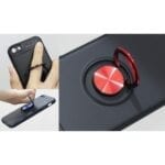 Et sort/gråt mobilcover af TPU plastik med magnetisk metal ring giver dig den perfekte kombination af god berøringsflade og beskyttelse til din iPhone SE/5S/5.