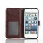 iPhone SE/5S/5 Flipcover af læder med kortholder, støttestativ og magnetisk lukkesystem – Mørkebrun