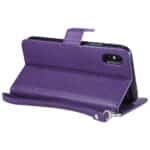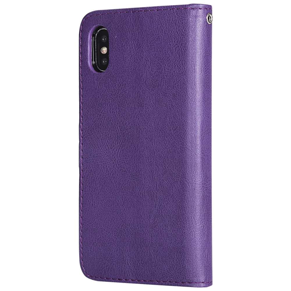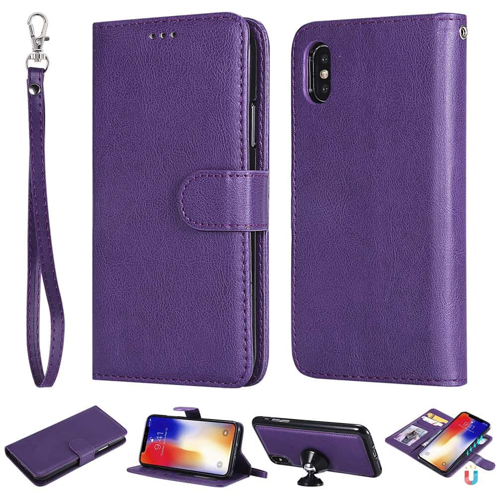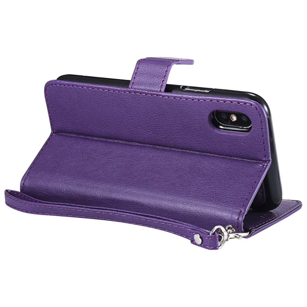 iPhone X / XS aftagelig 2-i-1 mobilcover af læder med pung og håndrem – Lilla