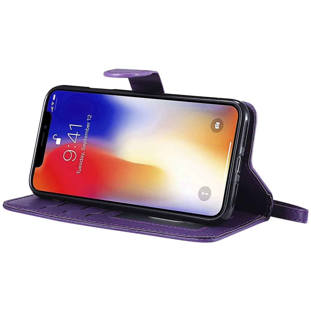 Det smarte mobilcover kan også bruges som et støttestativ, så du kan se diverse videoer uden at holde telefonen, og der følger også en håndrem med, så du altid kan have et sikkert greb i din telefon. Sidst men ikke mindst kan dit lilla iPhone X / XS mobilcover også skilles fra pungen, hvis man har lyst til det.