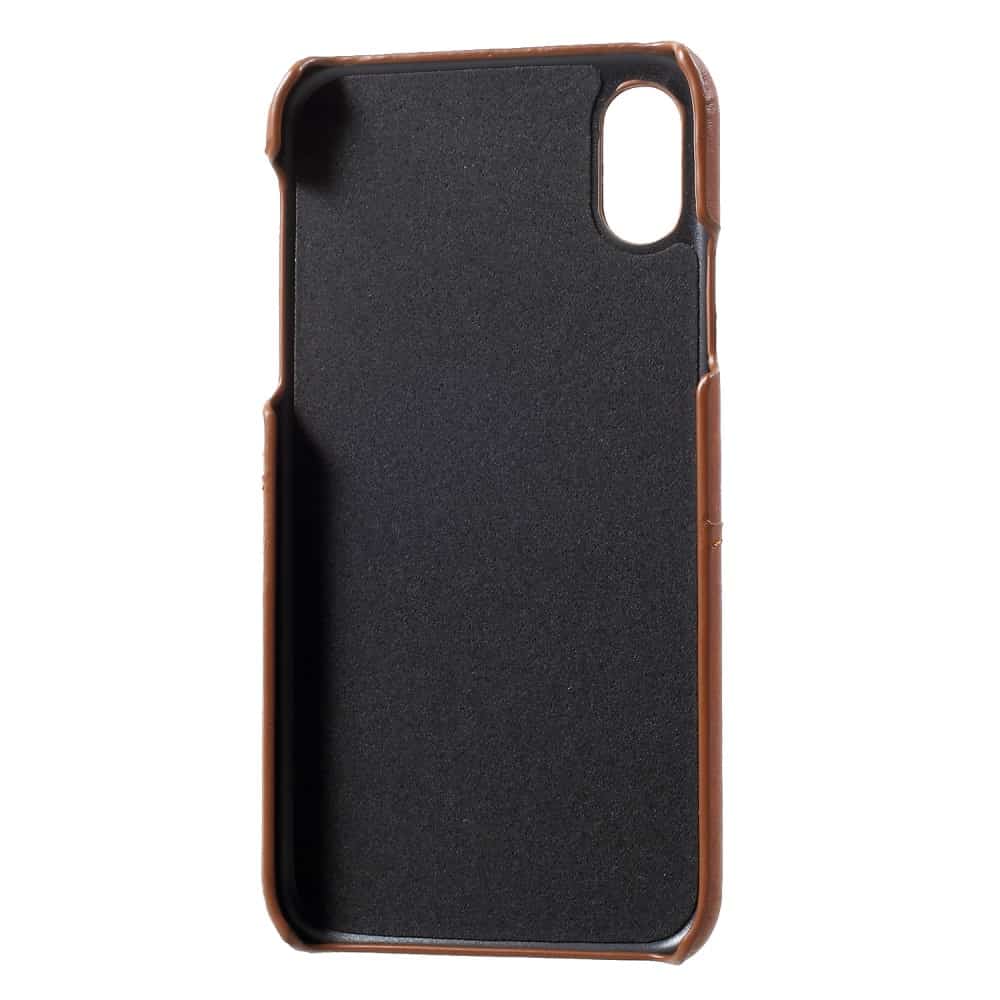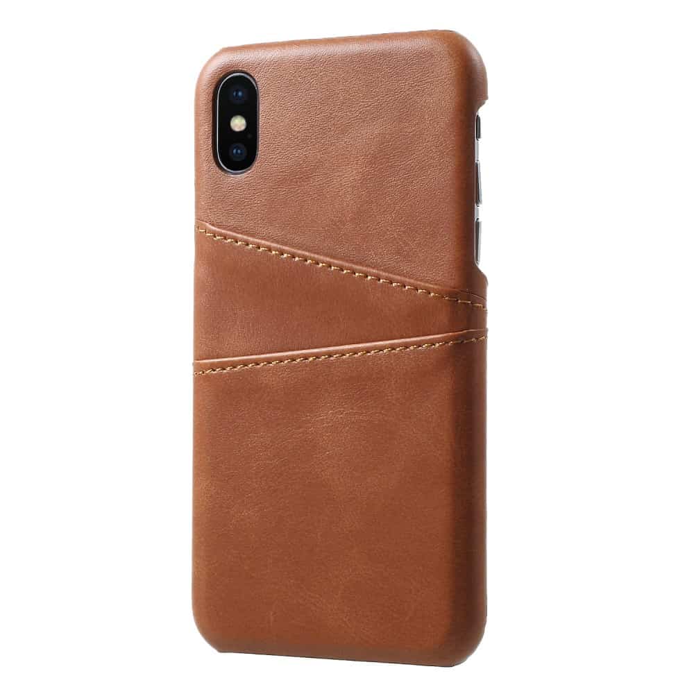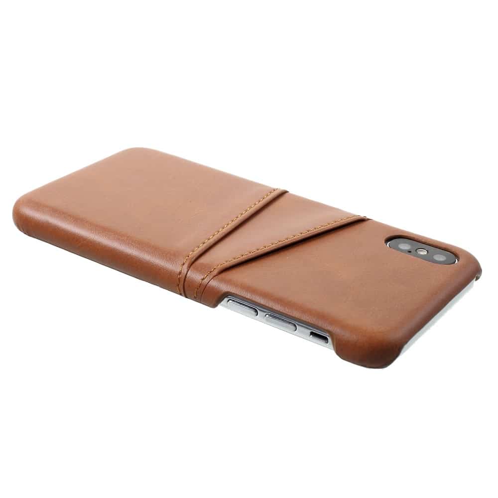 iPhone X / XS bagcover af læder med to kortholdere – Mørkebrun