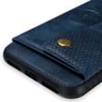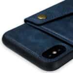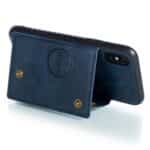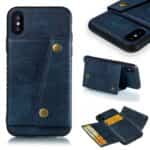 iPhone X / XS bagcover af læder og magnetisk metal med kortholder og støttestativ – Blå