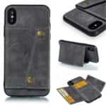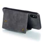 iPhone X / XS bagcover af læder og magnetisk metal med kortholder og støttestativ – Grå