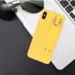 Et gult mobilcover af blødt TPU plastik med håndstrop til din iPhone X / XS giver dig den perfekte kombination af god berøringsflade, beskyttelse og et stilrent design.