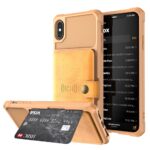 iPhone X / XS bagcover med magnetisk metal, kortholder og støttestativ – Brun