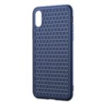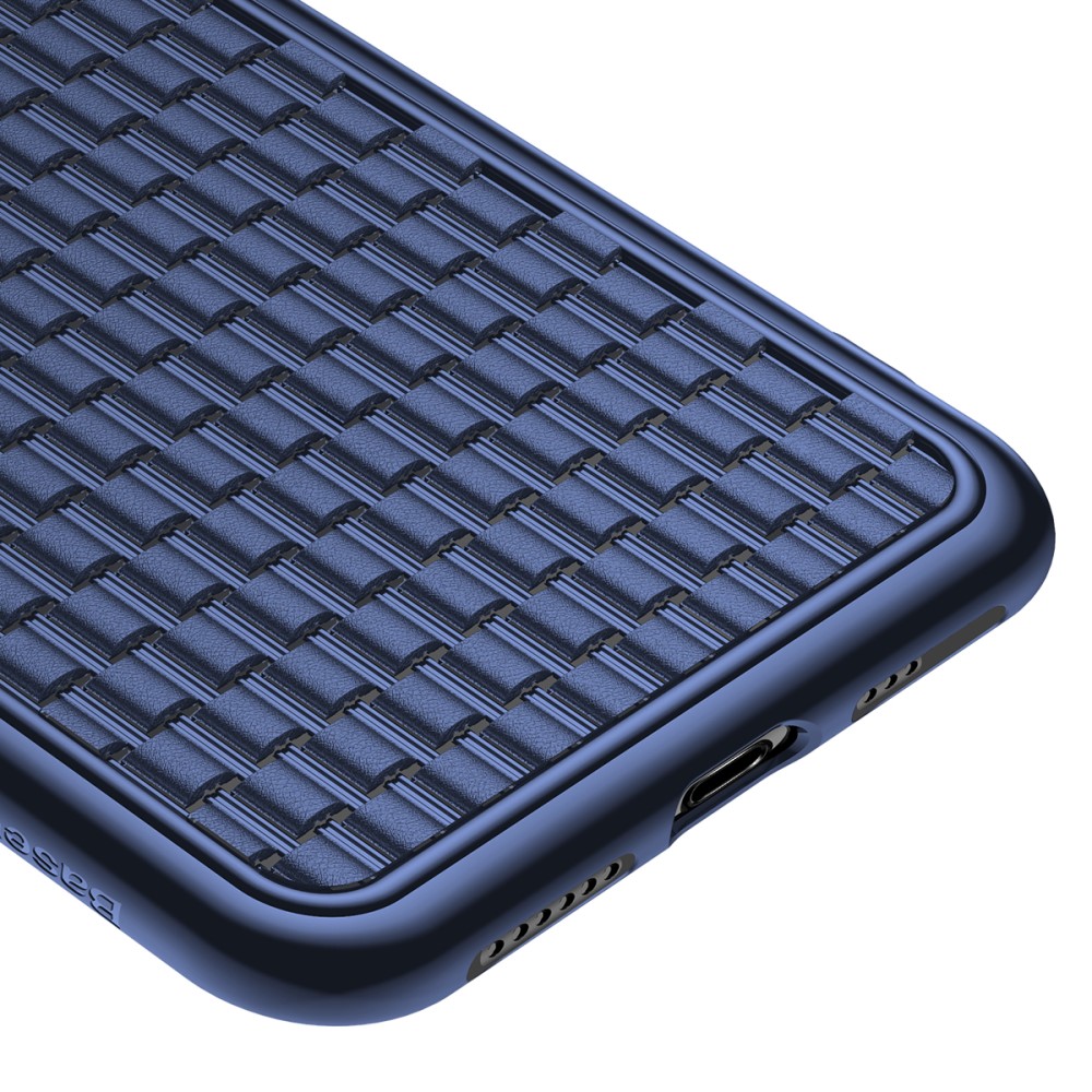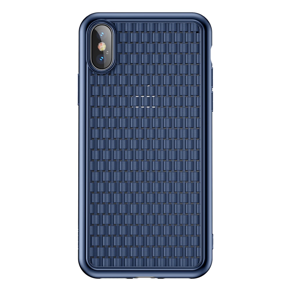 Et blåt BASEUS mobilcover af TPU blødt plastik med flettende mønster til din iPhone X / XS giver dig den perfekte kombination af god berøringsflade, beskyttelse og et stilrent design.