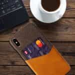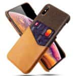 iPhone X / XS KSQ bagcover af læder og tekstil med kortholder – Orange