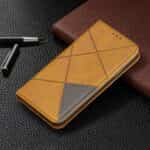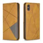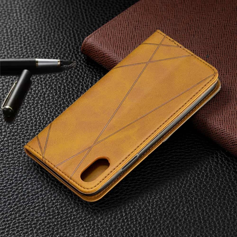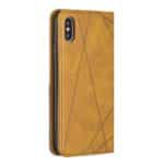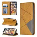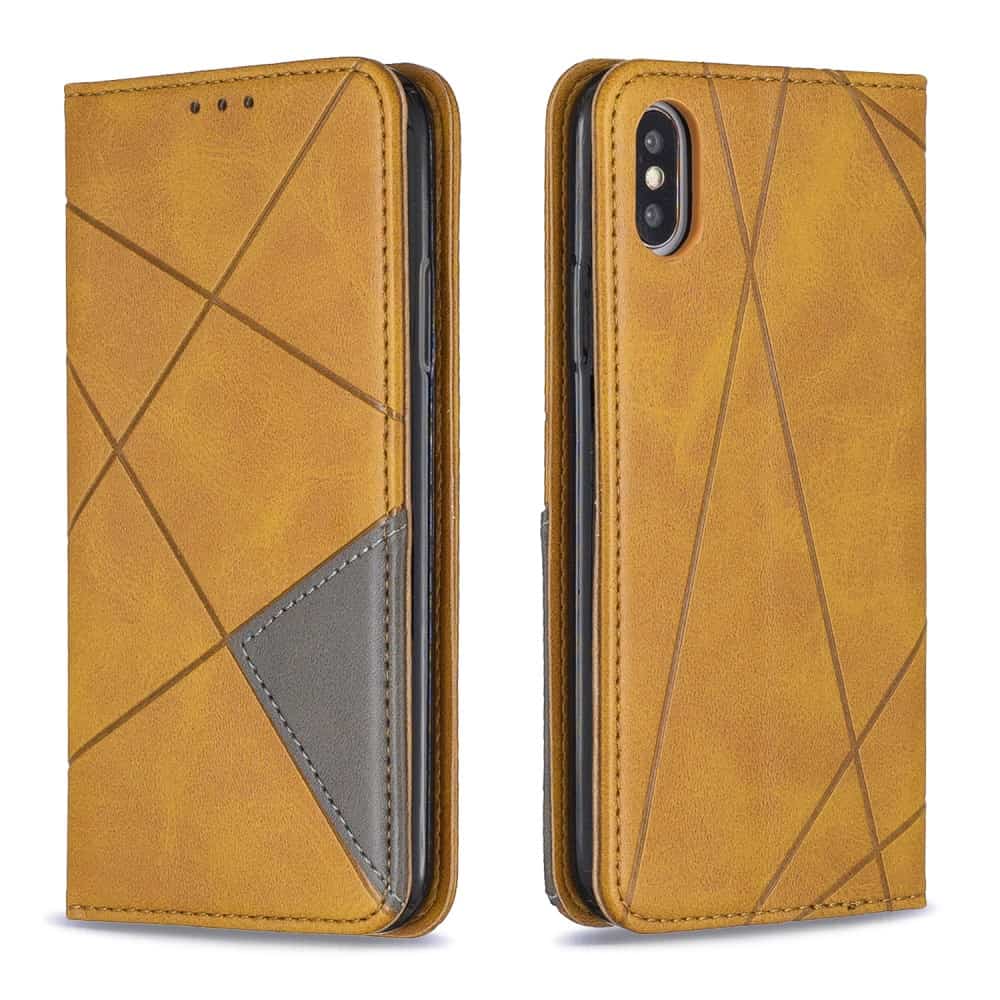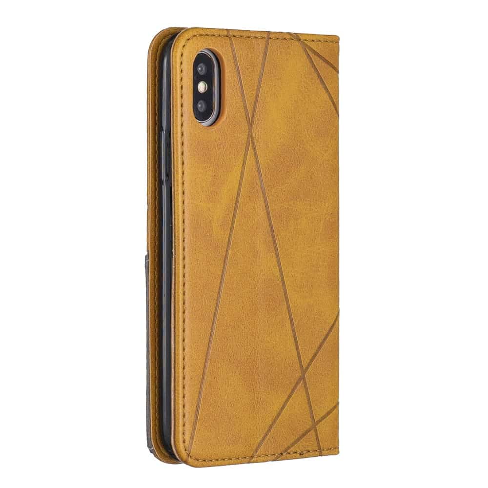iPhone X / XS mobilcover af læder med geometrisk mønster og kortholder – Brun