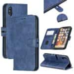 iPhone X / XS mobilcover af læder med kortholder og håndrem – Blå