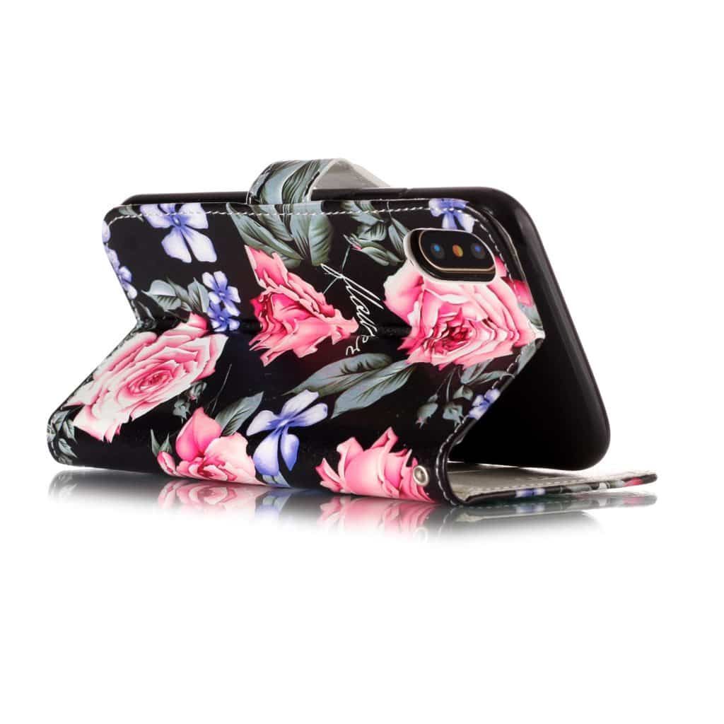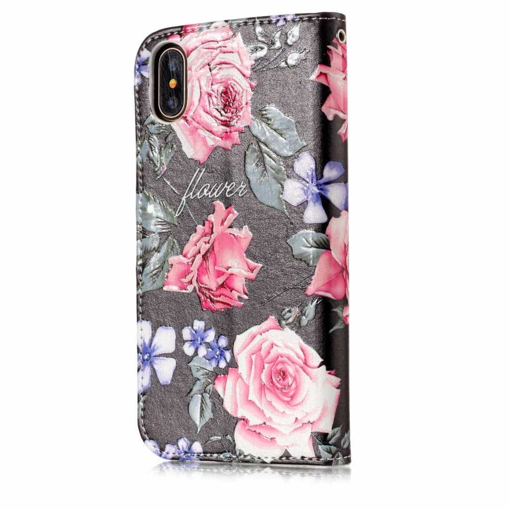 iPhone X / XS mobilcover af læder med pung – Flotte Blomster
