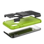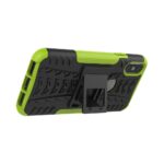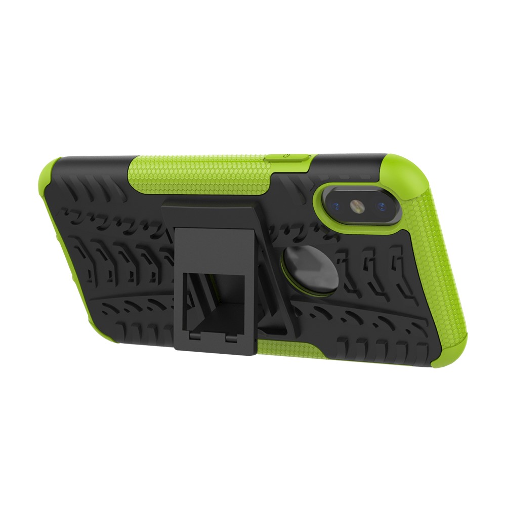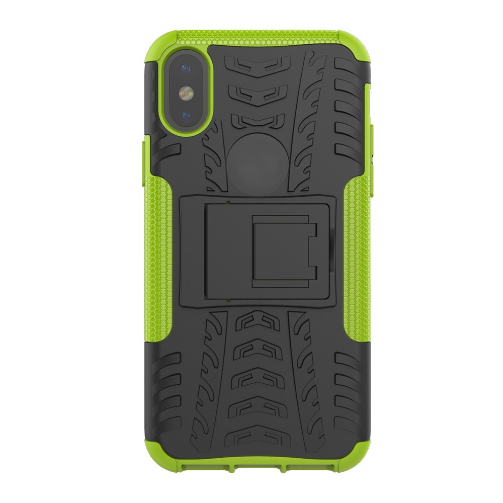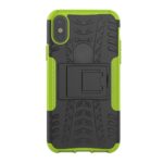 iPhone X / XS solidt bagcover med dækmønster og støttestativ – Sort/Grøn