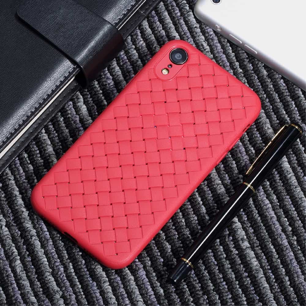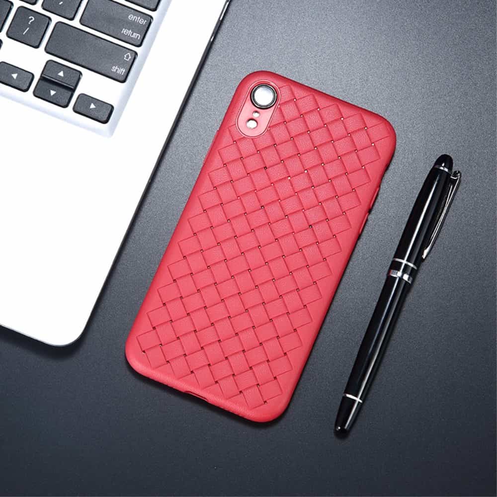 Et rødt BENKS mobilcover af TPU blødt plastik med flettende mønster til din iPhone XR giver dig den perfekte kombination af god berøringsflade, beskyttelse og et stilrent design.