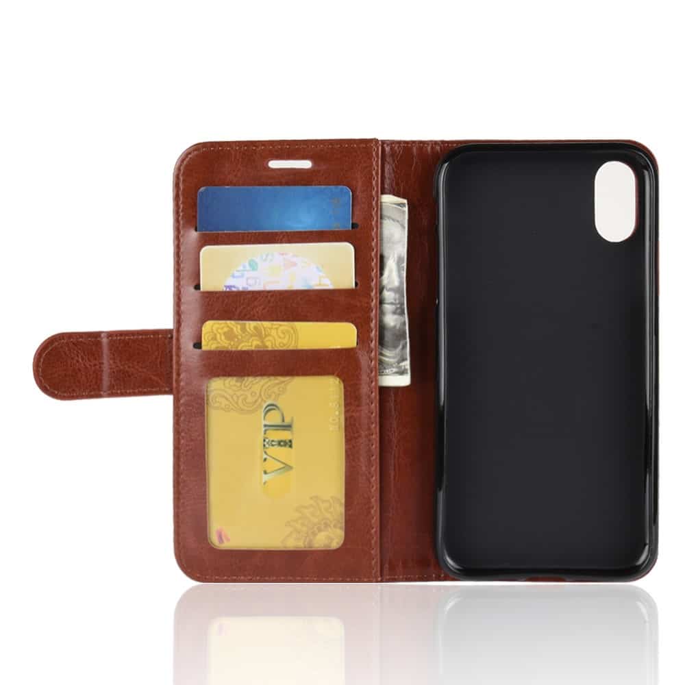 iPhone XR Crazy Horse Flipcover med kortholder – Brun