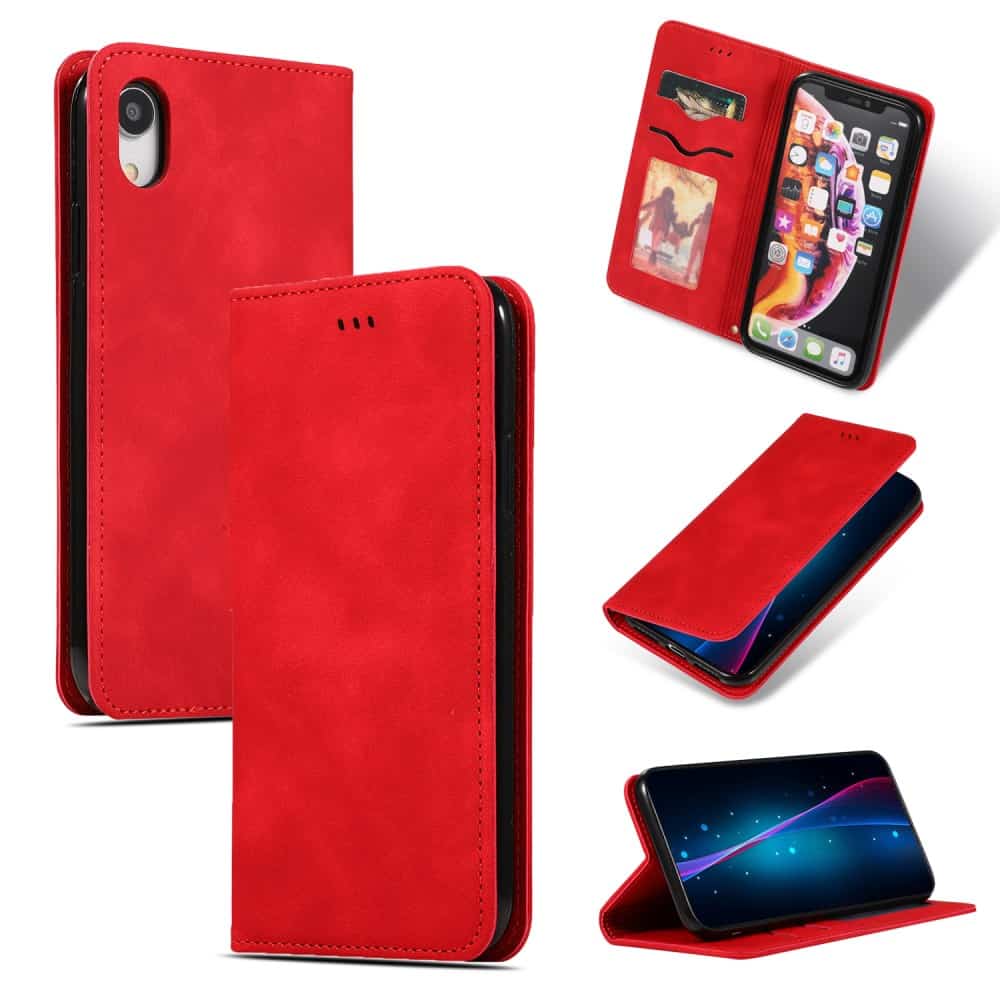 iPhone XR Flipcover af læder med automatisk lukkesystem – Rød