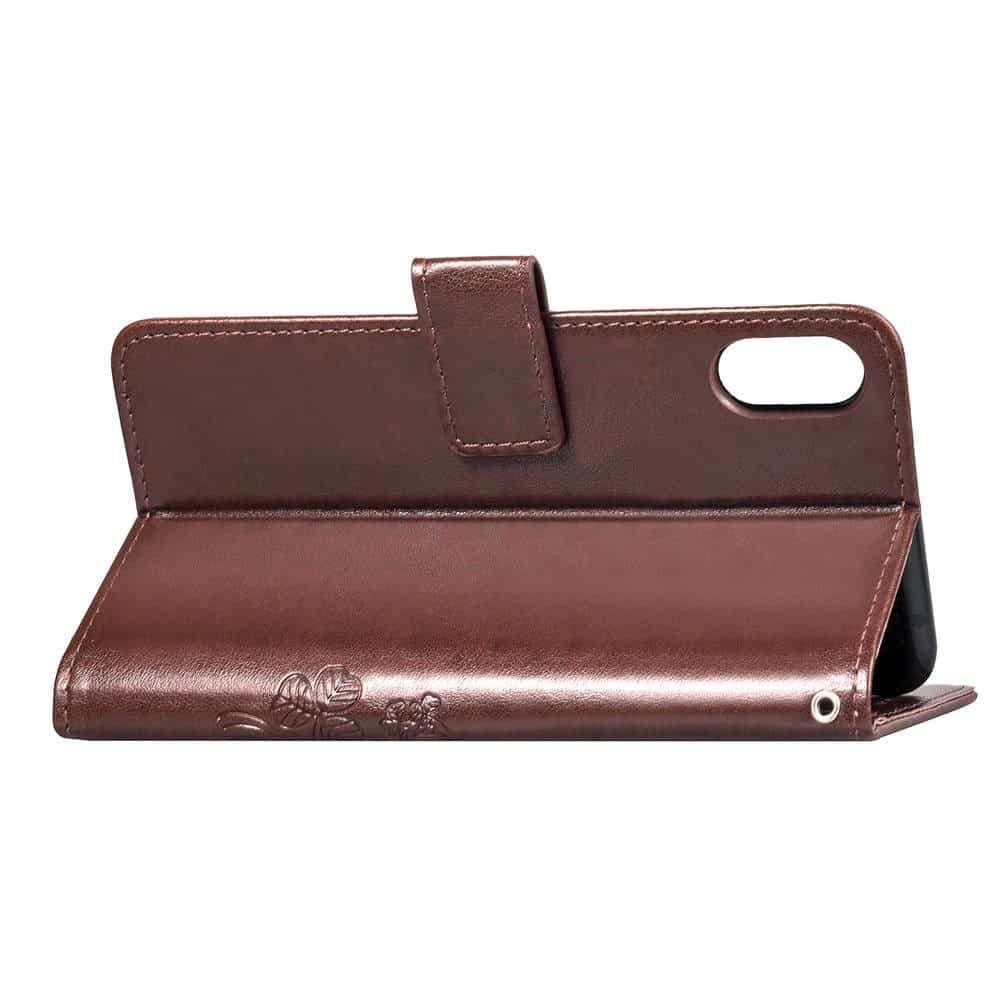 iPhone XR Flipcover med sommerfugle og blomster samt kortholder – Brun