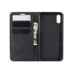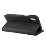 Et sort, forretningsstilet mobilcover af PU læder med kortholder og automatisk lukkesystem til din iPhone XR giver dig den perfekte kombination af god berøringsflade, beskyttelse og et stilrent design.