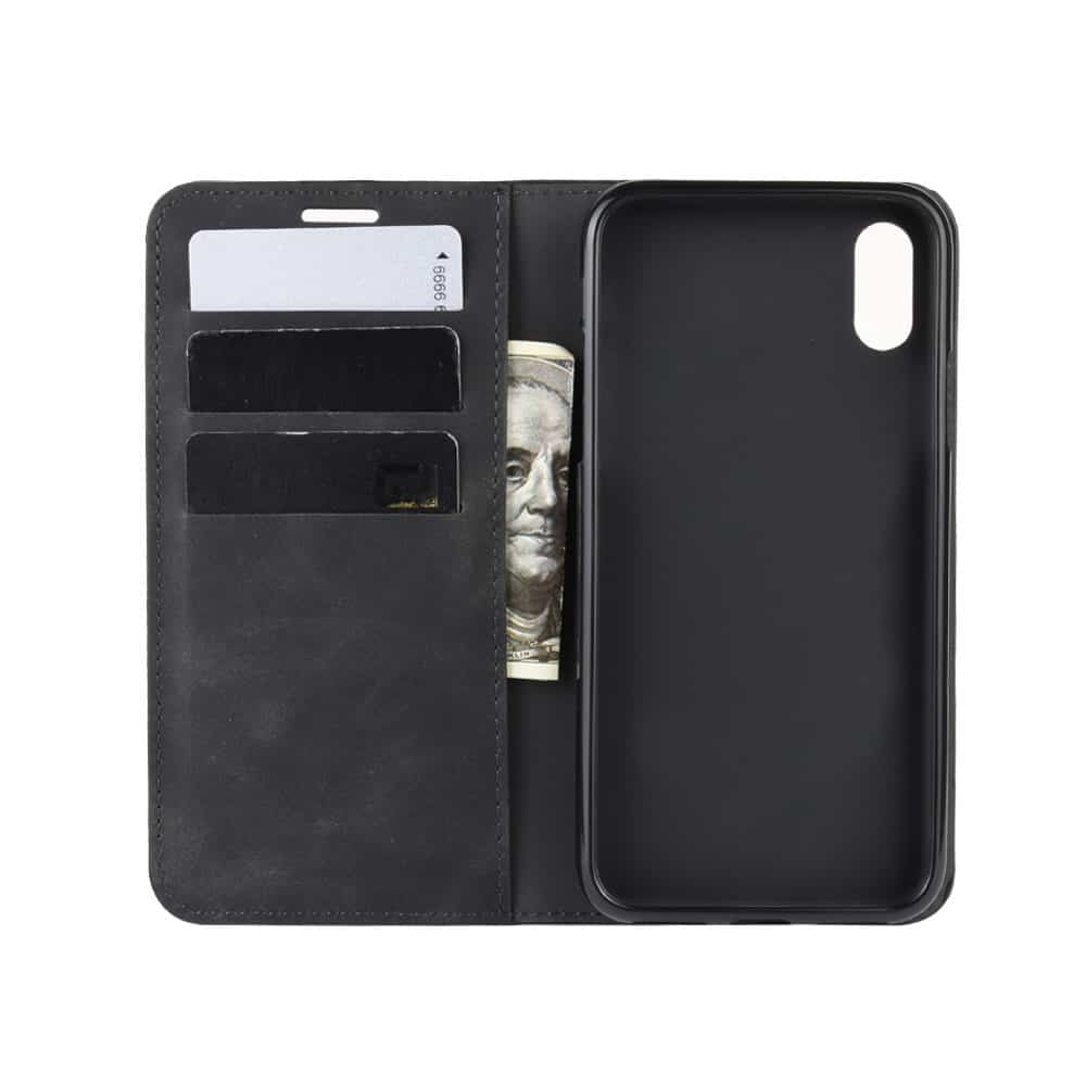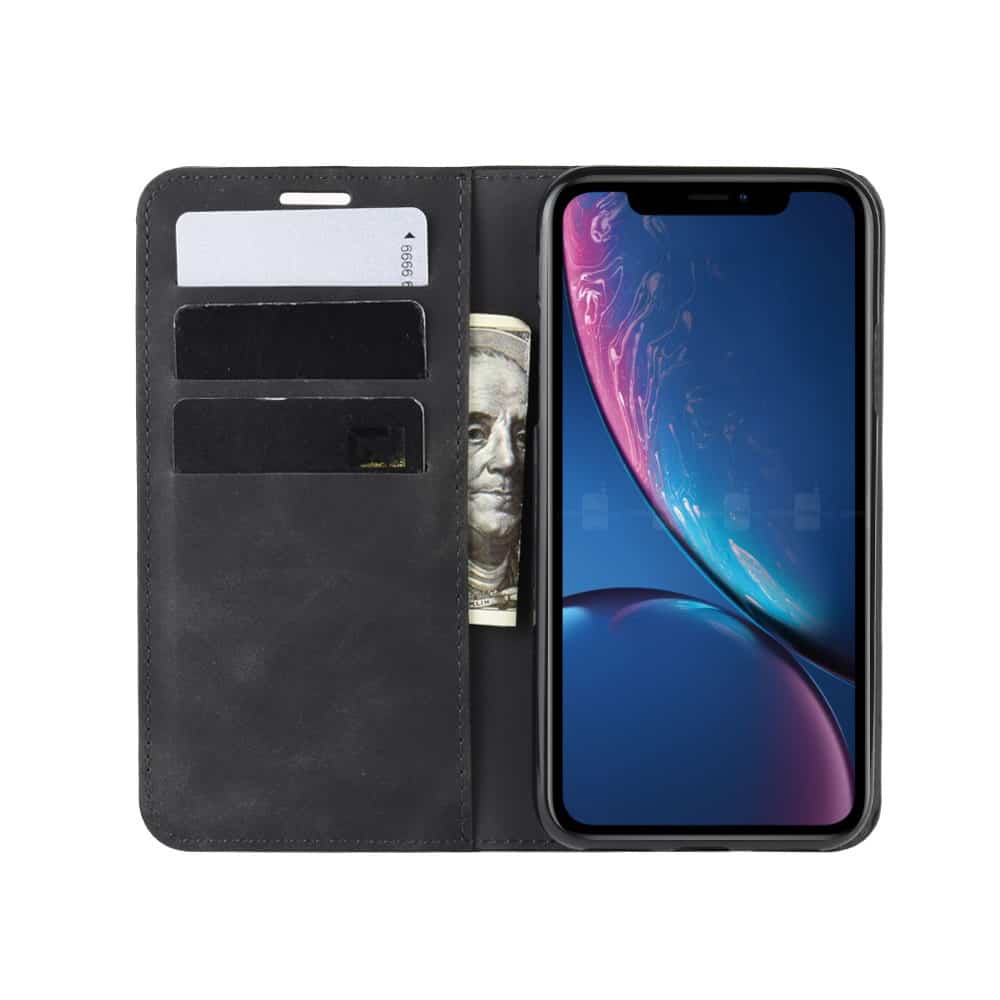 iPhone XR forretningsstilet mobilcover med kortholder og automatisk lukkesystem – Sort