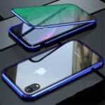 iPhone XR mobilcover af magnetisk metal med hærdet glas og 360 graders beskyttelse – Blå