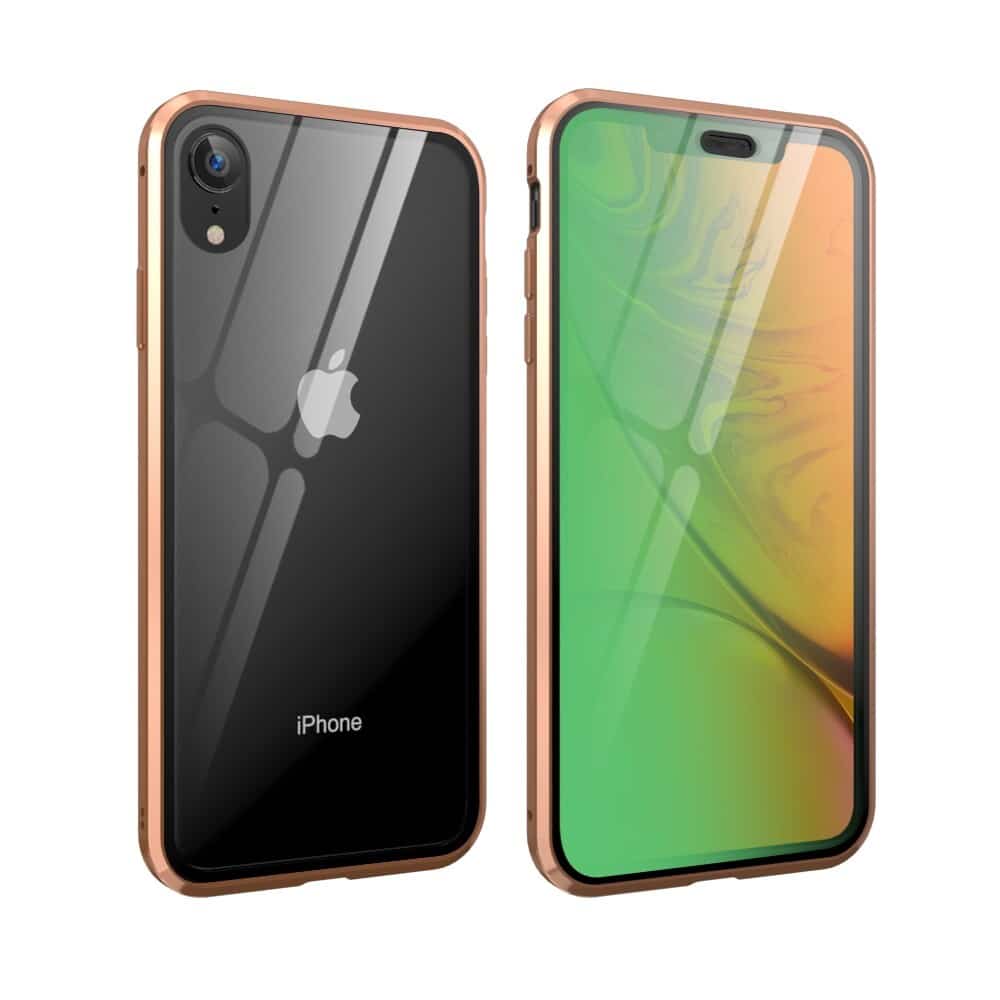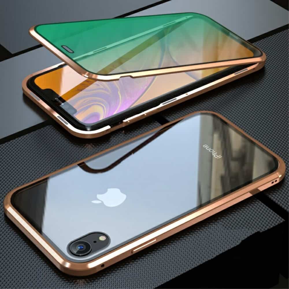 iPhone XR mobilcover af magnetisk metal med hærdet glas og 360 graders beskyttelse – Guld