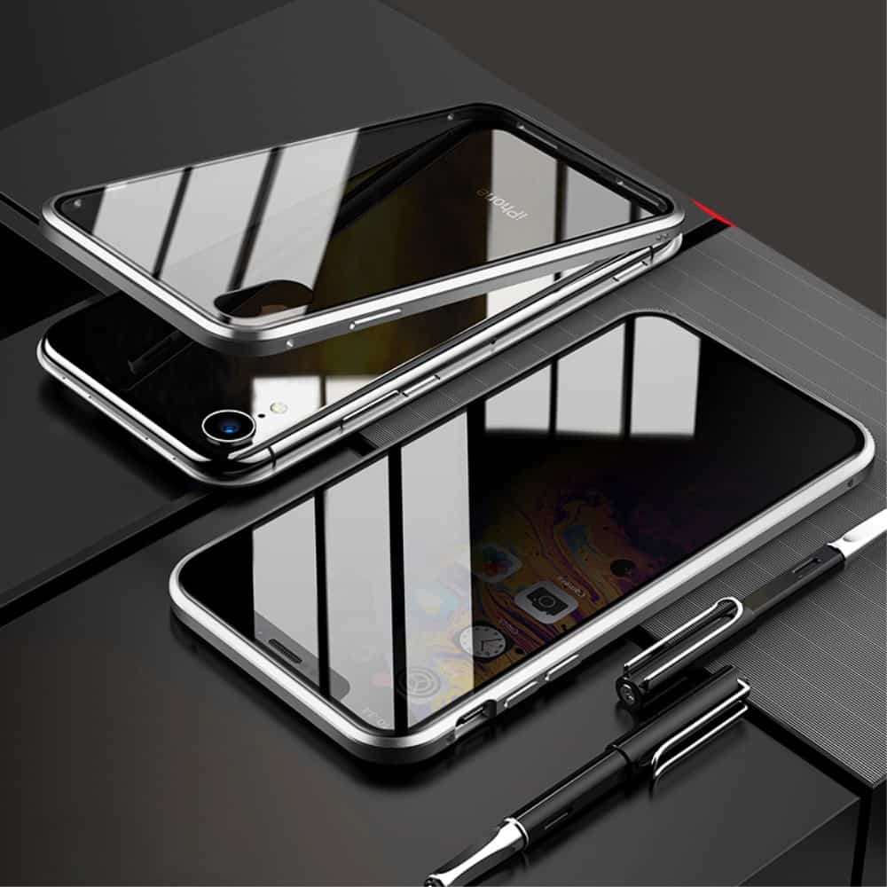 iPhone XR mobilcover af magnetisk metal med hærdet glas – Sølv