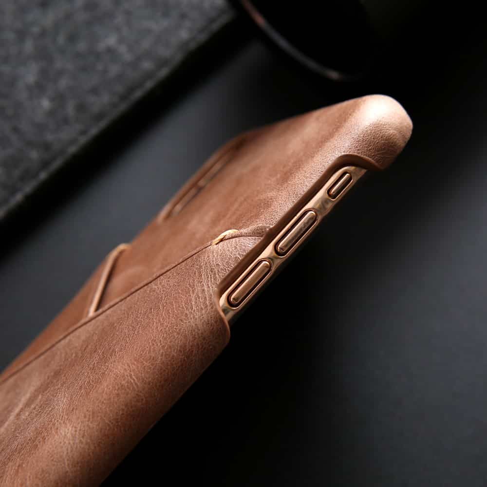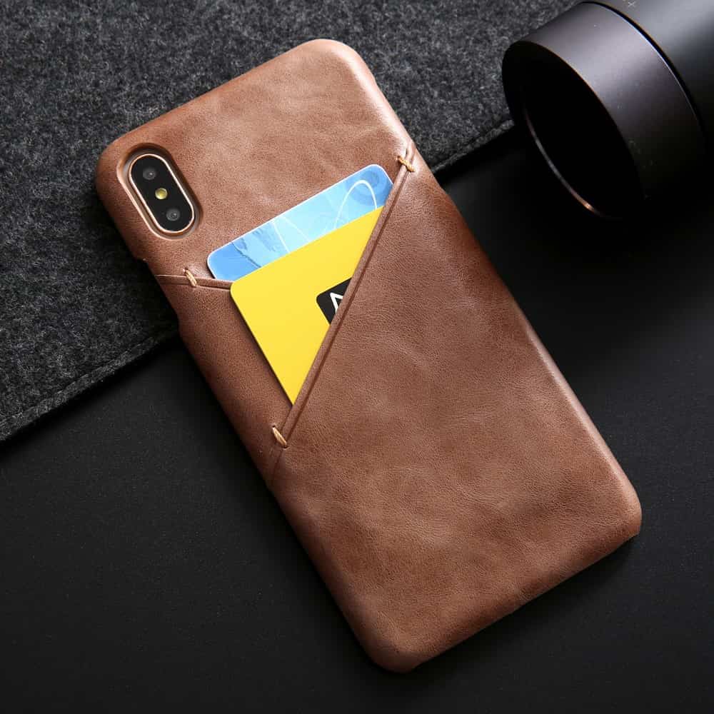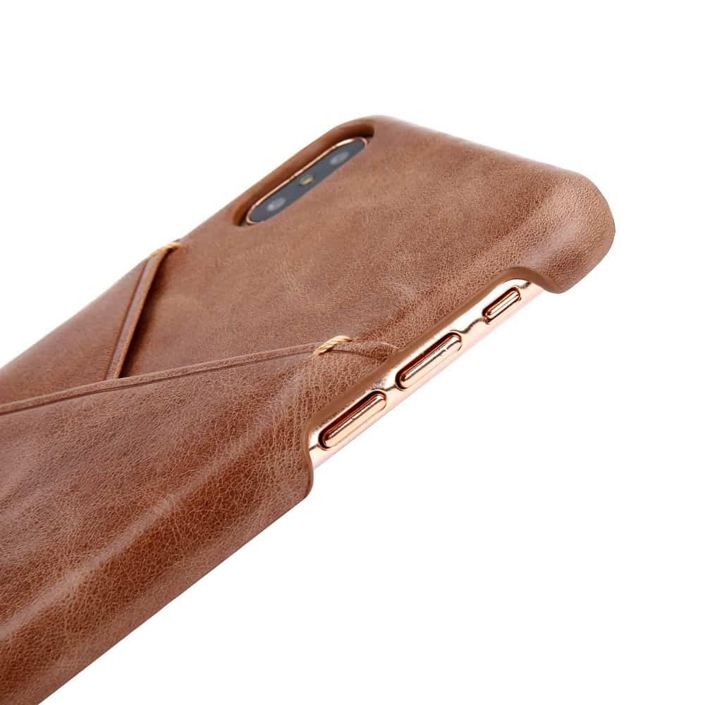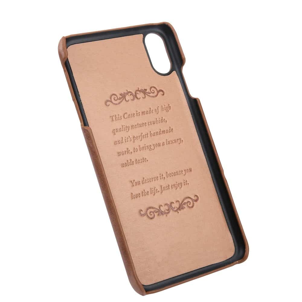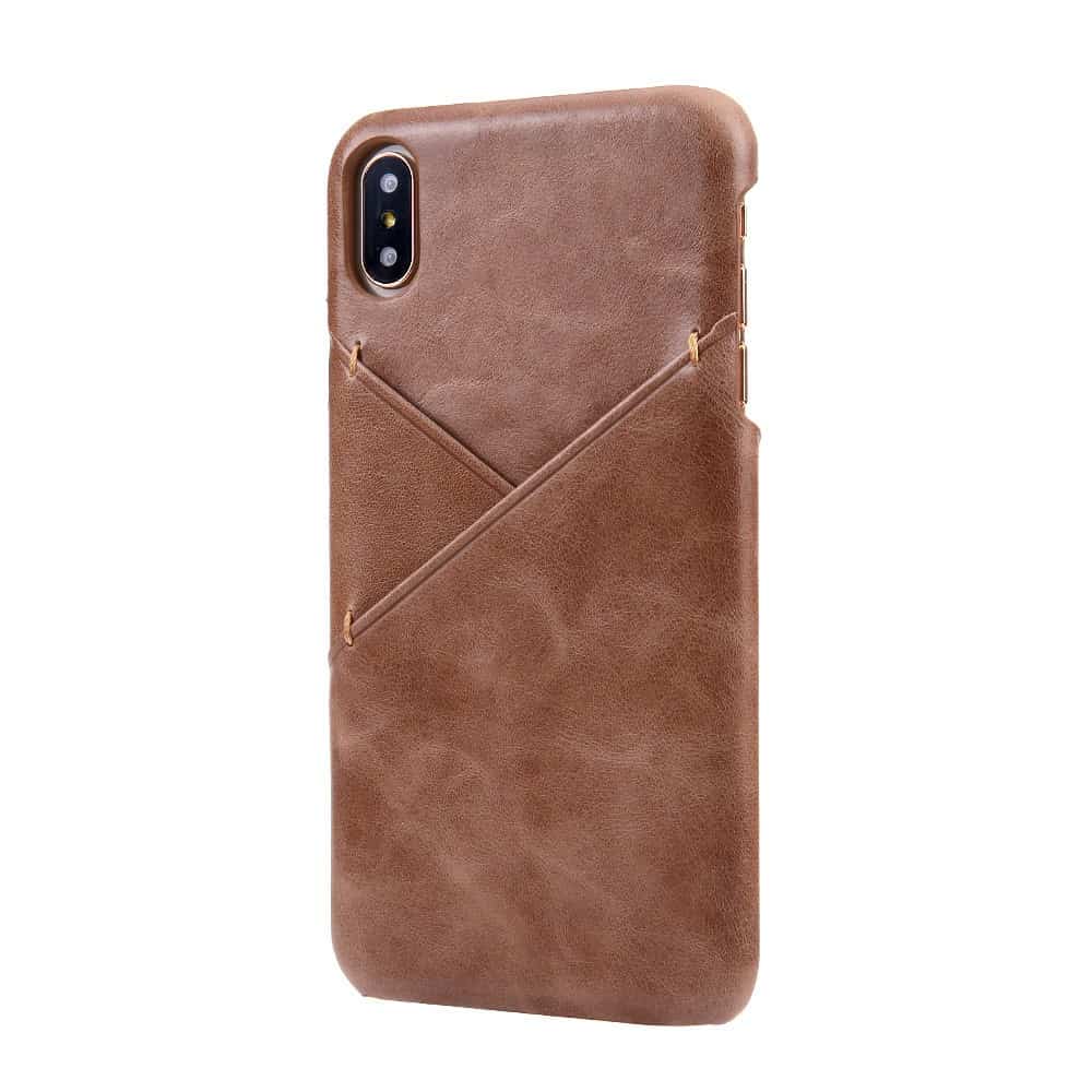 iPhone XS Max bagcover af ægte læder og kortholder – Brun
