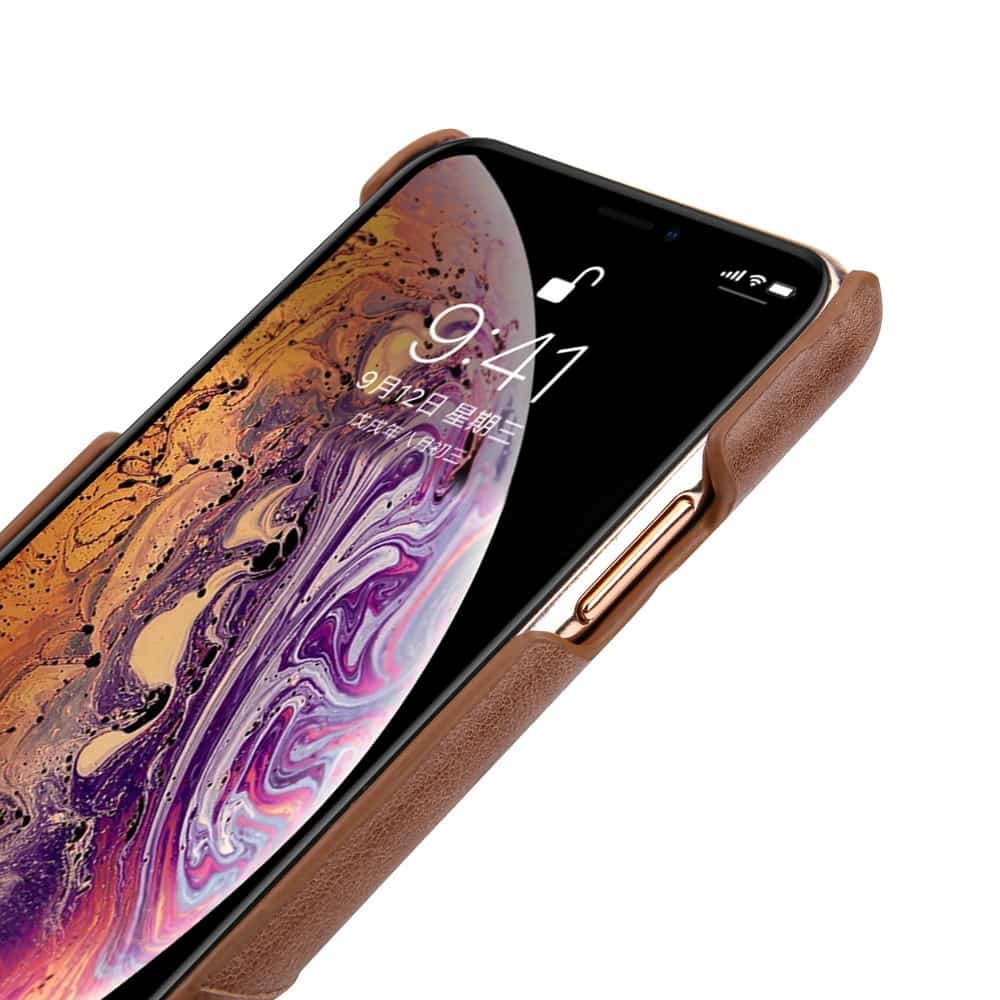 Et brunt mobilcover af ægte læder giver dig den perfekte kombination af god berøringsflade, beskyttelse og et stilrent design til din iPhone XS Max.