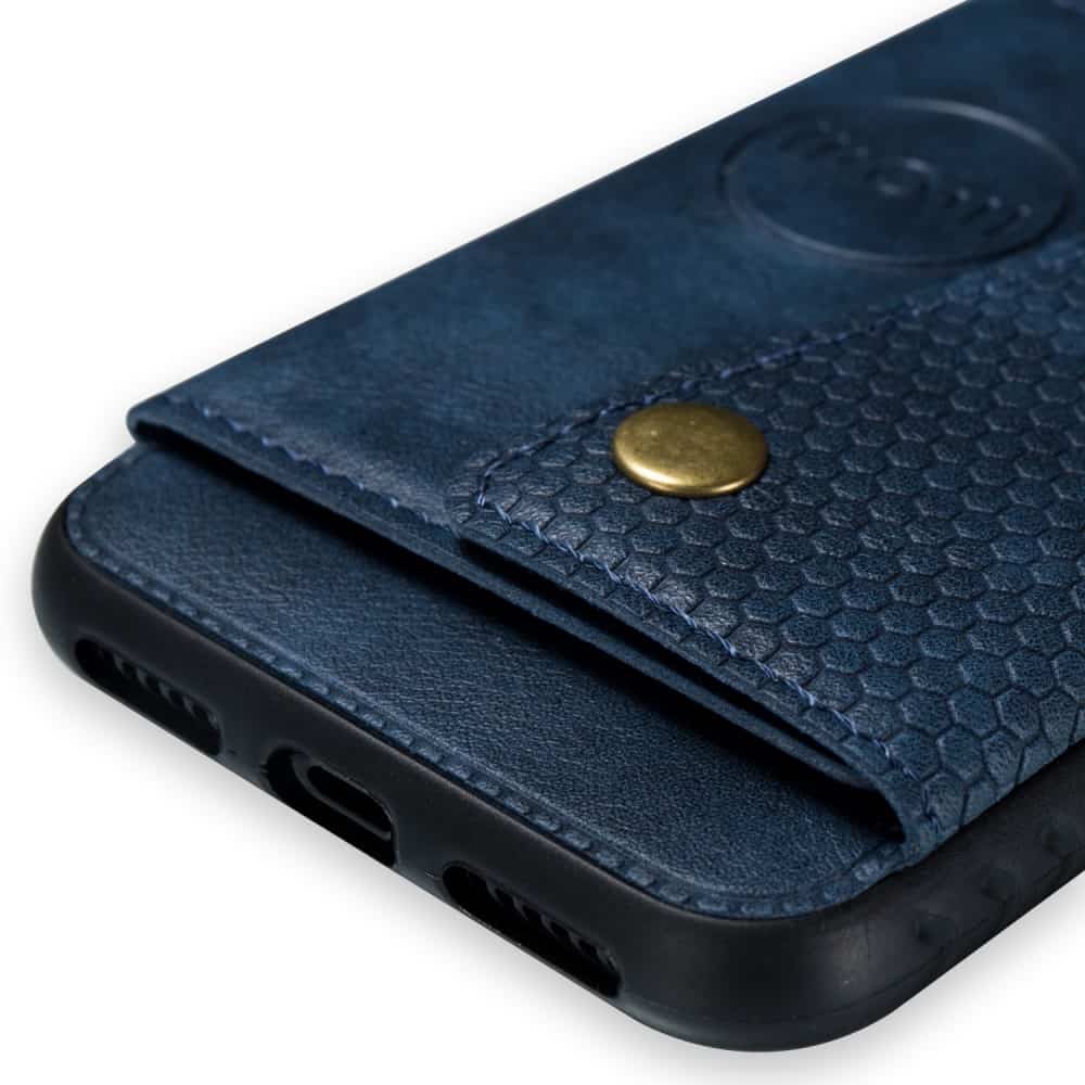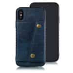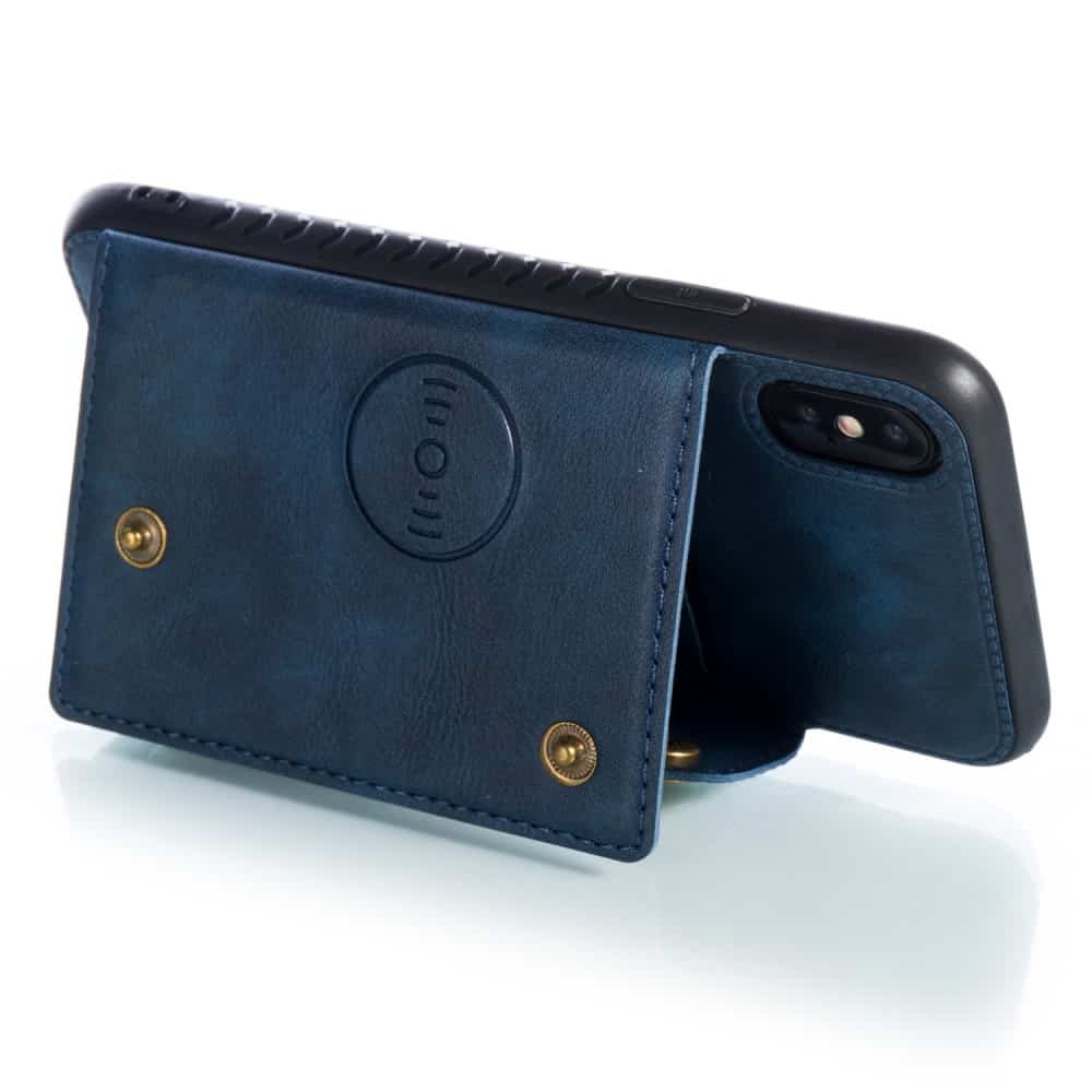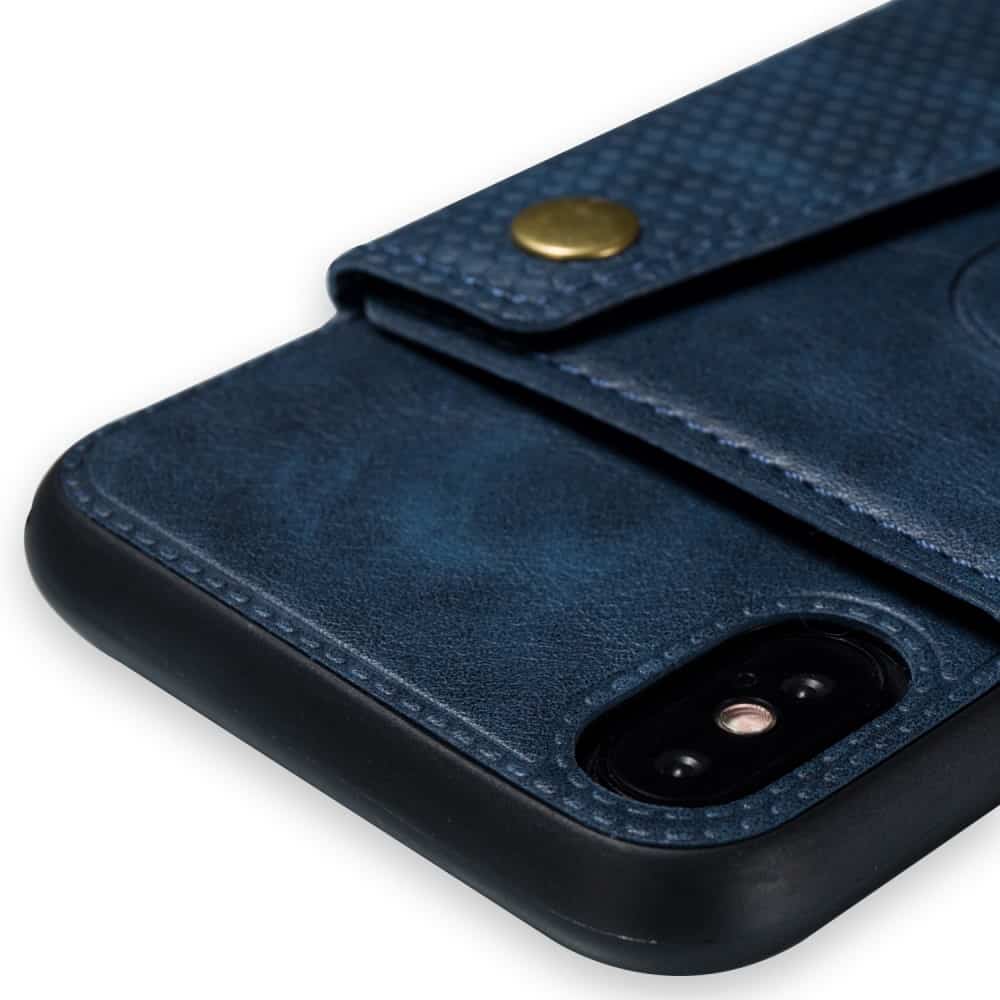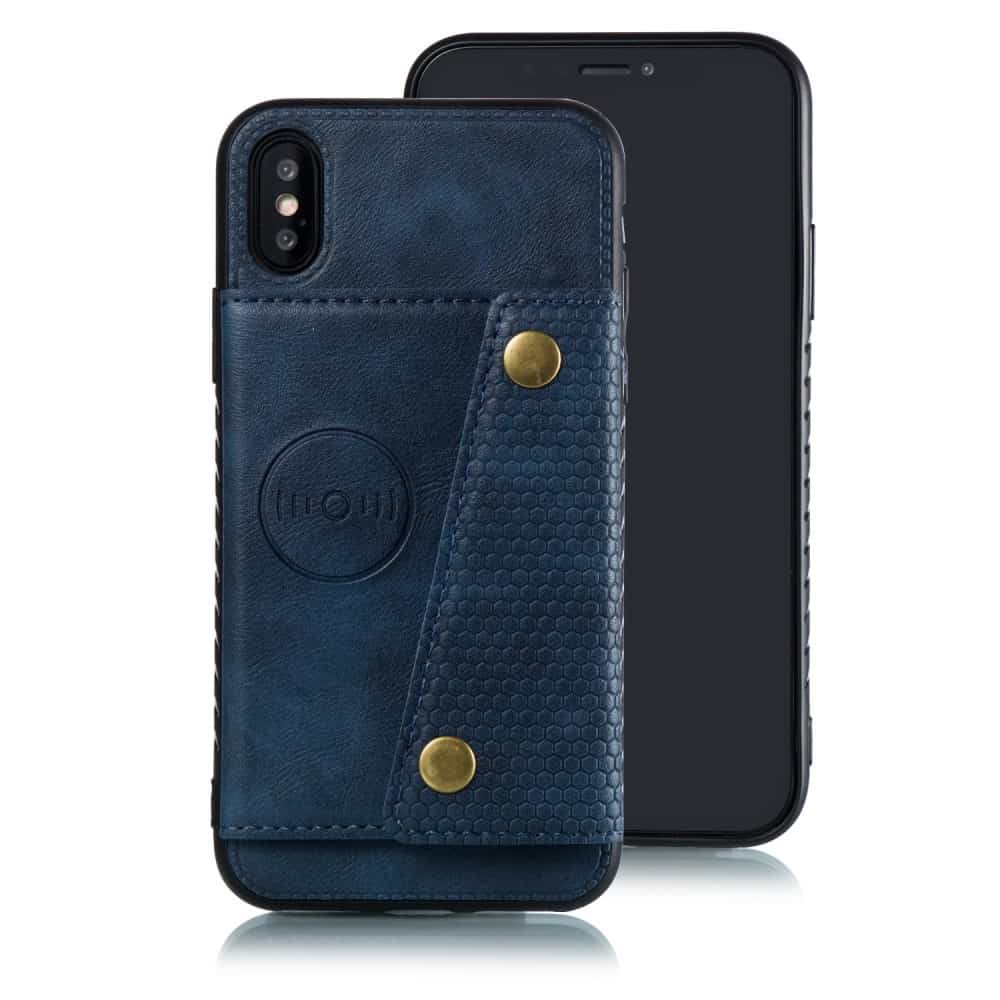 iPhone XS Max bagcover af læder og magnetisk metal med kortholder og støttestativ – Blå