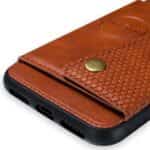 iPhone XS Max bagcover af læder og magnetisk metal med kortholder og støttestativ – Brun