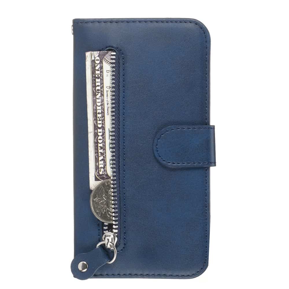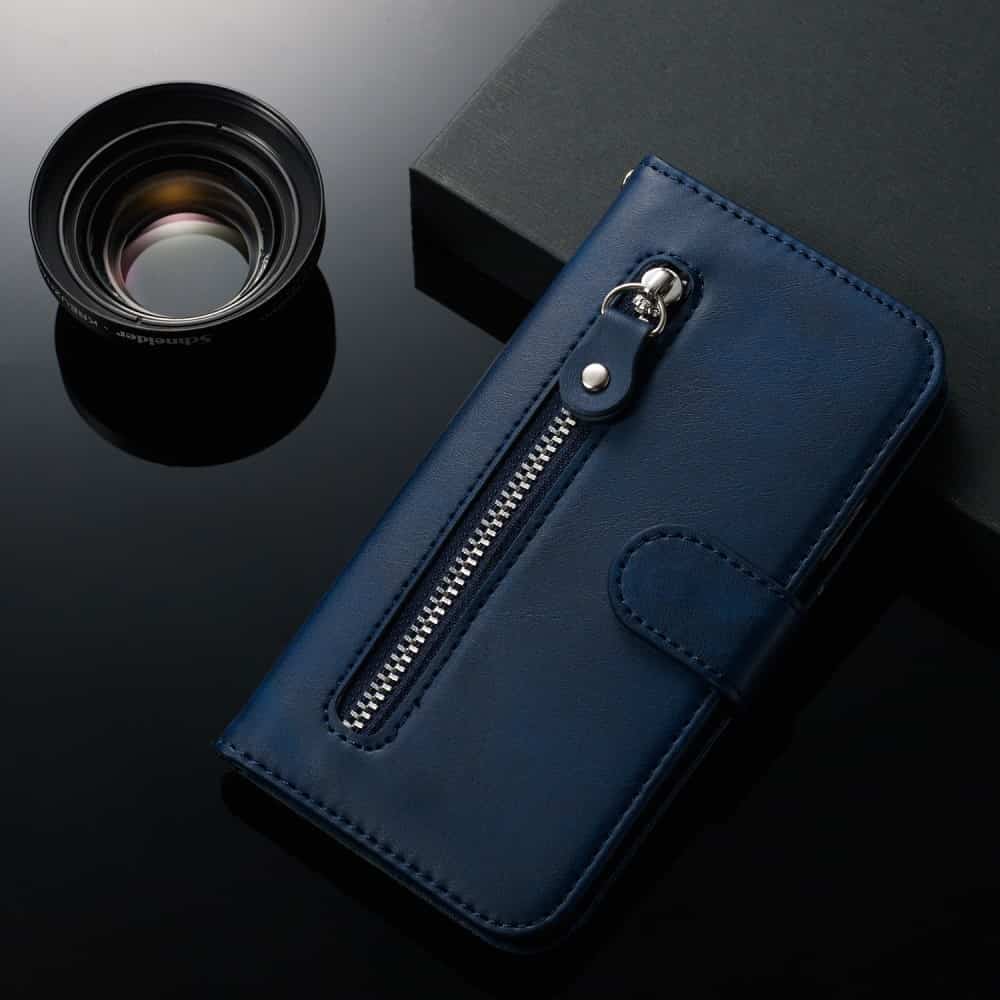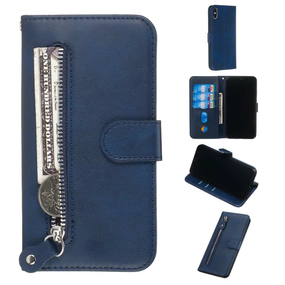 iPhone XS Max Flipcover af læder med pung og lynlås og kortholder – Blå