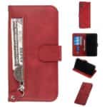 iPhone XS Max Flipcover af læder med pung og lynlås og kortholder – Rød