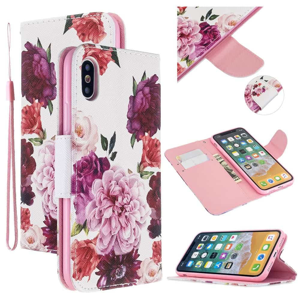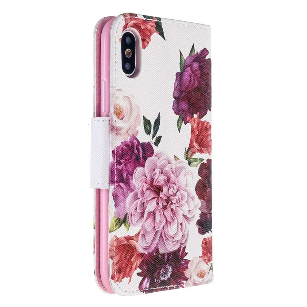 iPhone XS Max flipcover med pung og håndrem – Livlige Blomster
