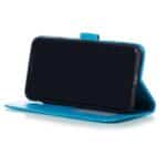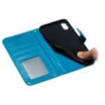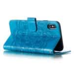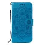 Et blåt mobilcover af PU læder med mandala blomster print samt kortholder og håndrem giver dig den perfekte kombination af god berøringsflade, beskyttelse og et unikt design til din iPhone XS Max.
