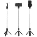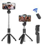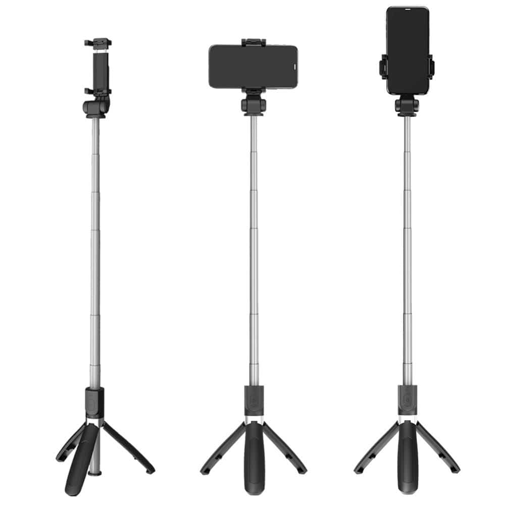 Dette smartphonestativ gør det nemt for dig at tage gode feriebilleder og selfies, for det kommer med en Bluetooth fjernbetjening som kan bruges som selvudløser. Højden kan indstilles, smartphoneholderen kan drejes og det kan både bruges i portræt- og landskabsmode. Fødderne på stativet kan foldes ind, så den er nemmere at have med, og så man kan bruge den som selfiestick.