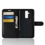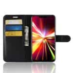 Huawei Mate 20 Lite flipcover af litchi læder med pung, kortholdere og støttestativ – Sort