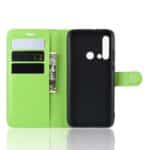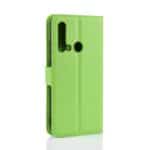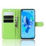Huawei P20 Lite flipcover af litchi læder med pung, kortholdere og støttestativ – Grøn