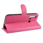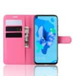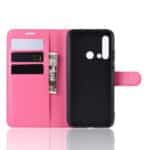 Huawei P20 Lite flipcover af litchi læder med pung, kortholdere og støttestativ – Rosa