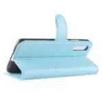 Huawei P20 flipcover af litchi læder med pung, kortholdere og støttestativ – Blå
