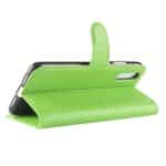 Huawei P20 flipcover af litchi læder med pung, kortholdere og støttestativ – Grøn