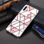 Huawei P30 Lite bagcover af TPU plastik i marble mønster – Hvid/Lyserød