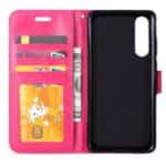 Huawei P30 flipcover af PU læder med pung, kortholdere og støttestativ – Rosa