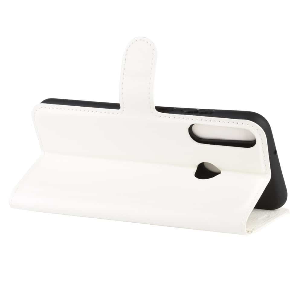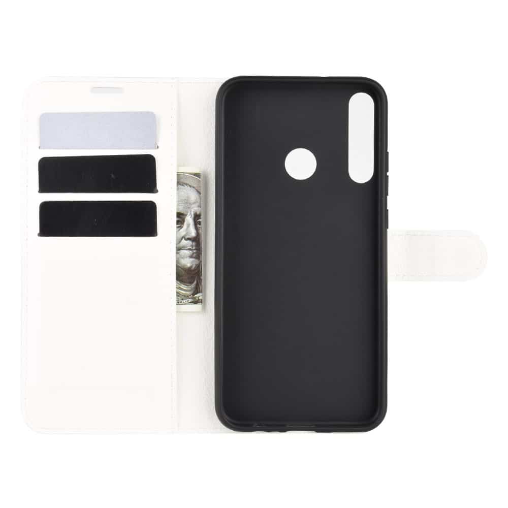 Huawei P40 Lite E flipcover af litchi læder med pung, kortholdere og støttestativ – Hvid