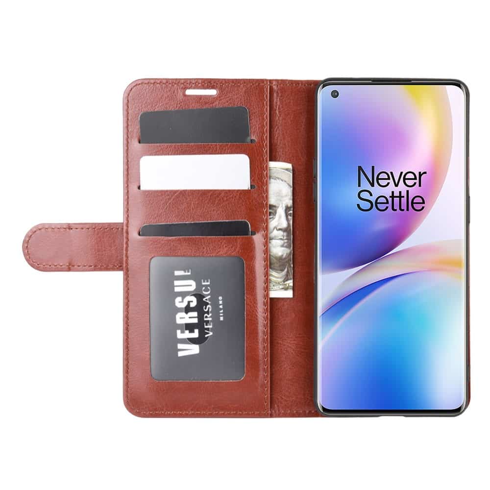 OnePlus 8 Pro flipcover med tre kortholderlommer i blødt materiale – Brun