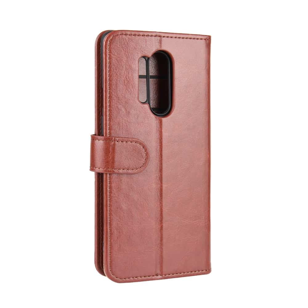 Et brunt flipcover i PU læder og TPU plastik til en OnePlus 8 Pro giver dig en kombination af fuld beskyttelse, fuld berøringsflade på skærmen og et rent udseende.