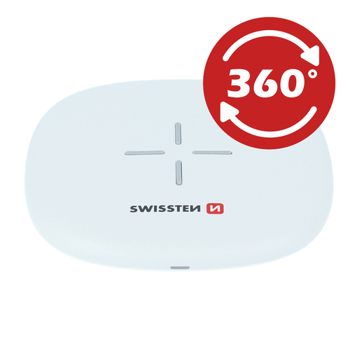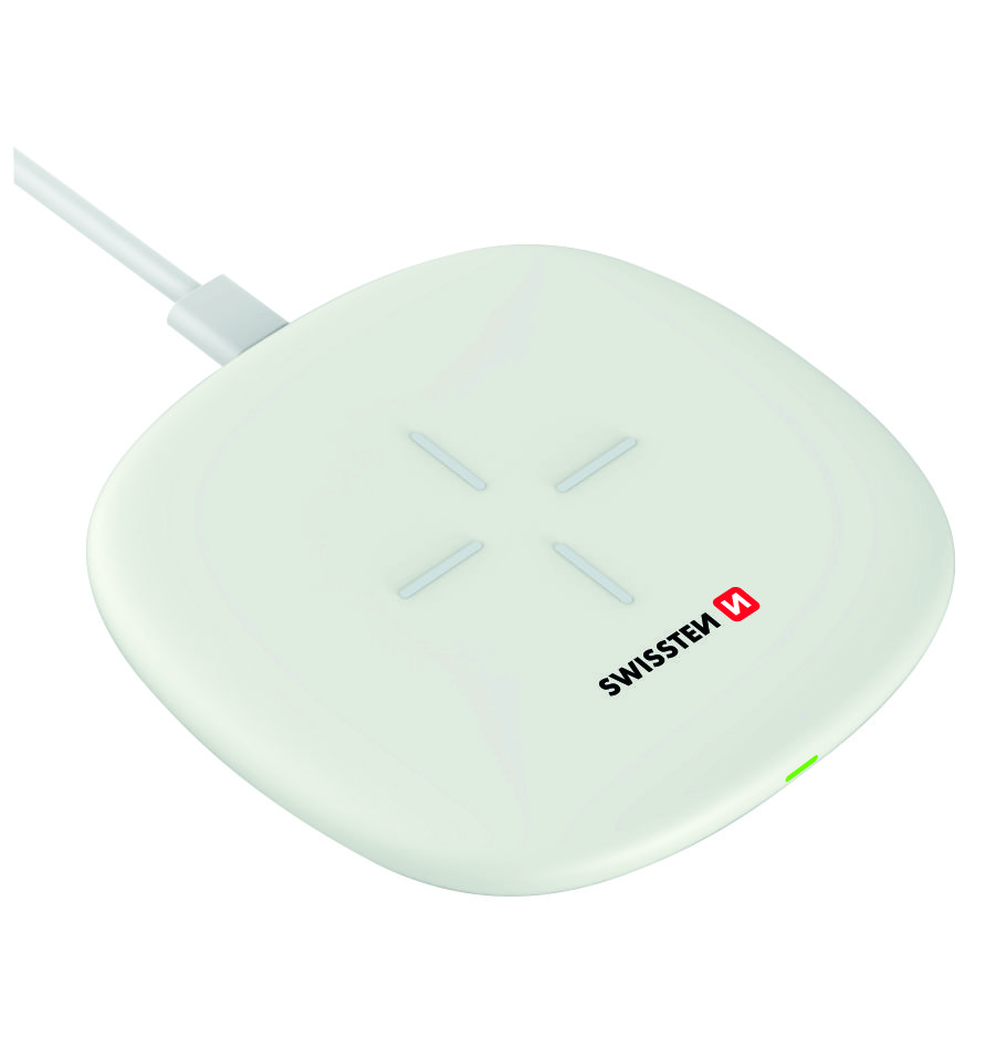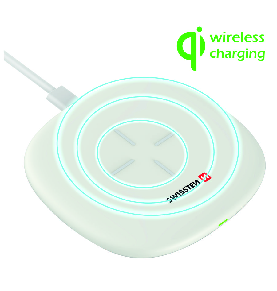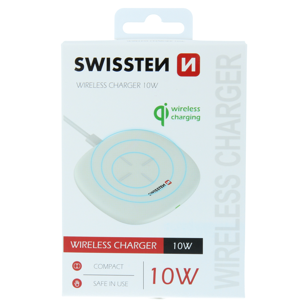 En meget tynd trådløs oplader fra Swissten med høj udgangseffekt 10W, som muliggør hurtig genopladning af din smartphone og understøtte QI opladning.
