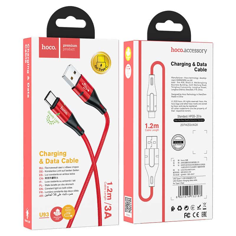 USB-A til USB-C kabel – 1,2 m (rød)