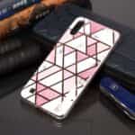 Samsung Galaxy A10 bagcover med marble mønster i blødt materiale – Hvid/Lyserød