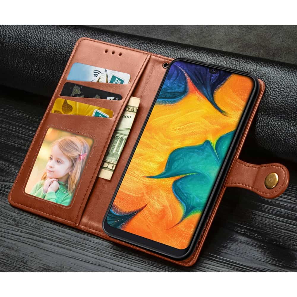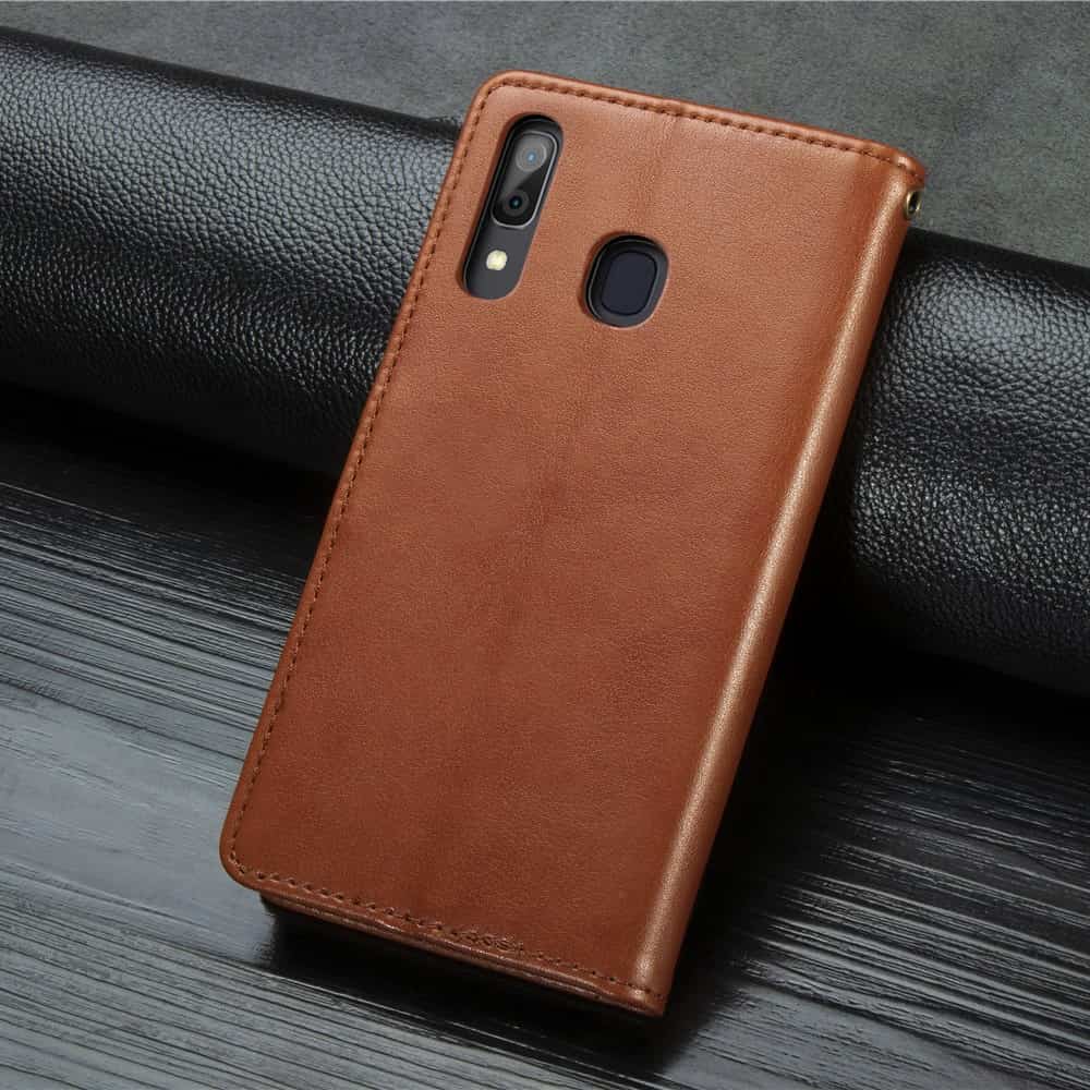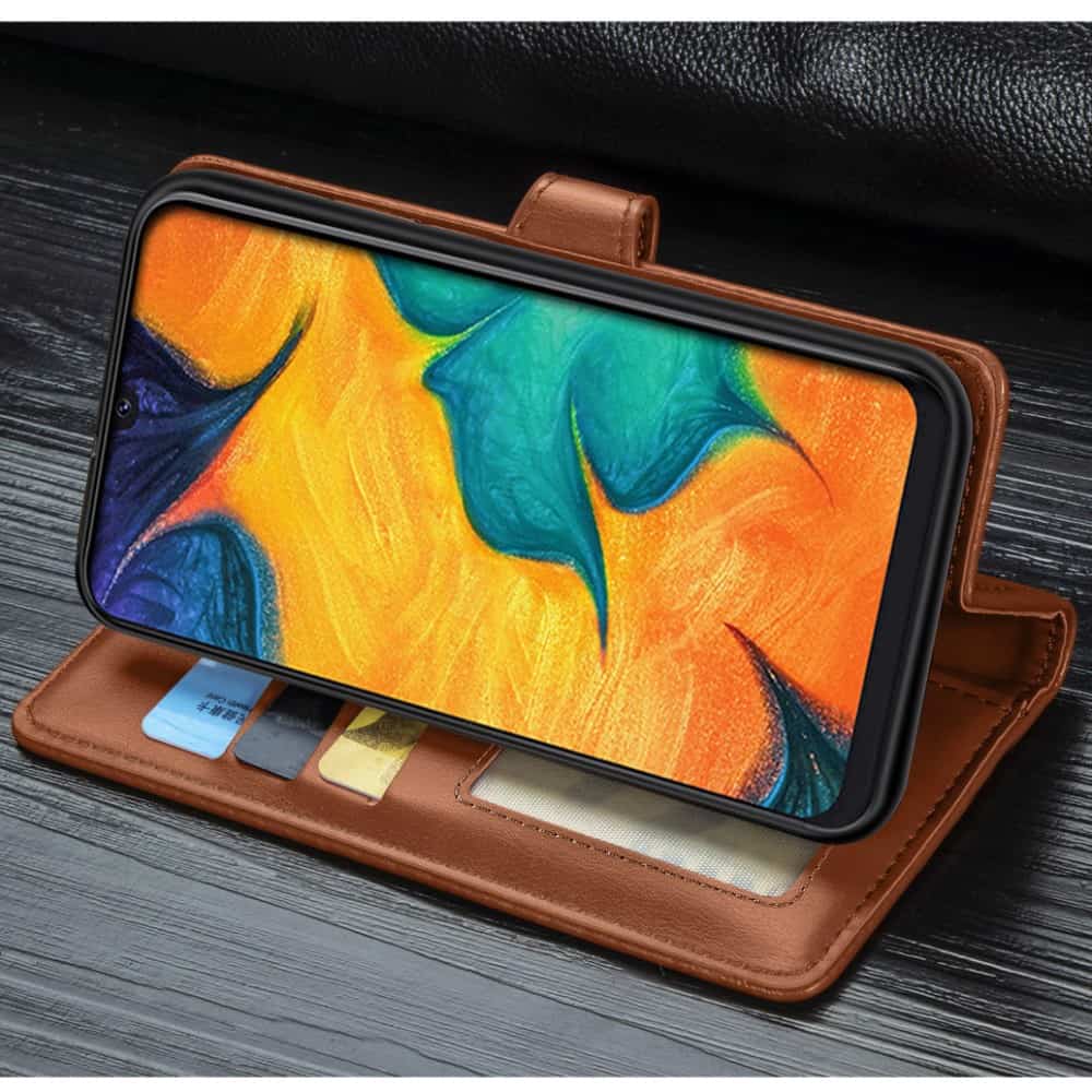 Samsung Galaxy A30/A20 flipcover med kortholder i blødt materiale – Brun