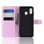 Samsung Galaxy A20e flipcover med kortholder i litchi læder – Lyserød