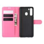 Samsung Galaxy A21 flipcover med kortholder i litchi læder – Rosa