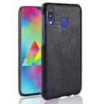 Samsung Galaxy A40 bagcover med krokodillemønster i hårdt materiale – Sort